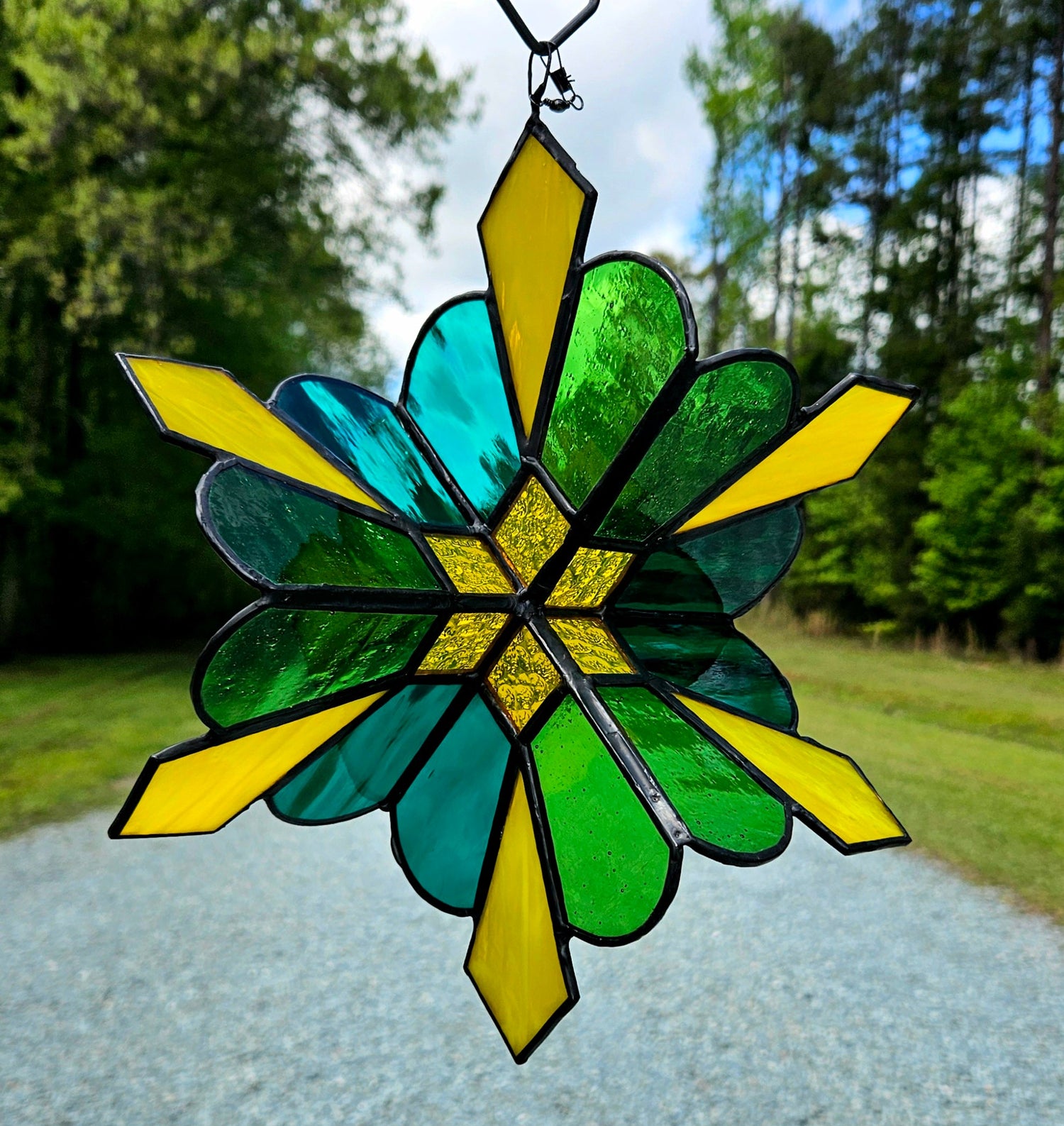 Handmade with stained glass here in our studio in North Carolina! Windchimes...